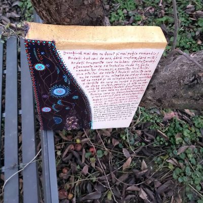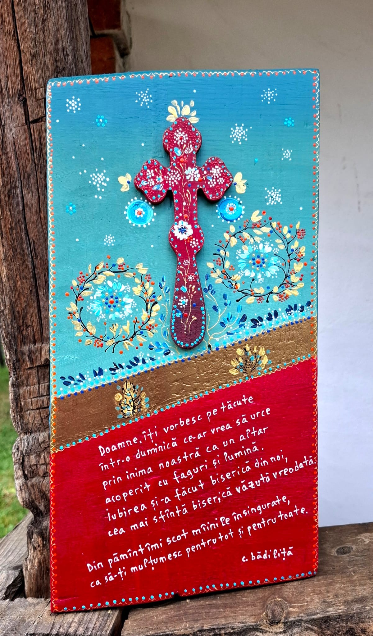 Pictură & scris pe lemn natural. Cruce aplicată. 40/20 cm